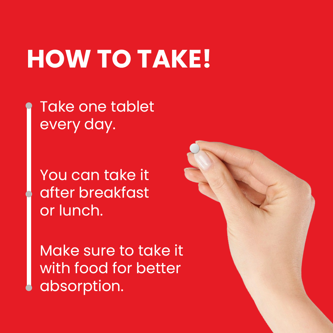 - Dosage: Take 1 tablet daily in the morning, after a meal, to support your daily nutritional needs.