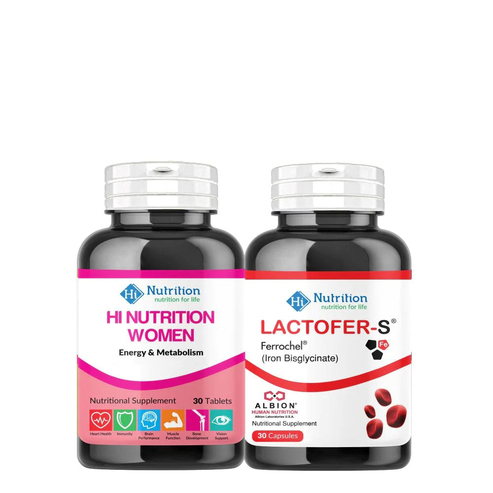 Iron and Vitality Essentials Bundle for Women: Lactofer S Capsules + HI Nutrition Women Tablets