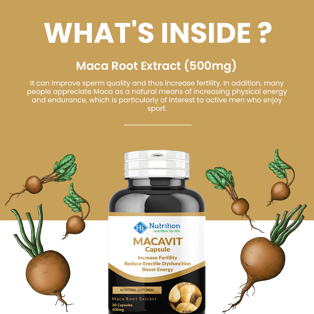 Macavit is a powerful dietary supplement crafted with pure Maca Root Extract. It is designed to enhance overall vitality and well-being. Formulated to naturally support reproductive health, energy levels, and physical performance, Macavit is the perfect addition to a balanced lifestyle.
