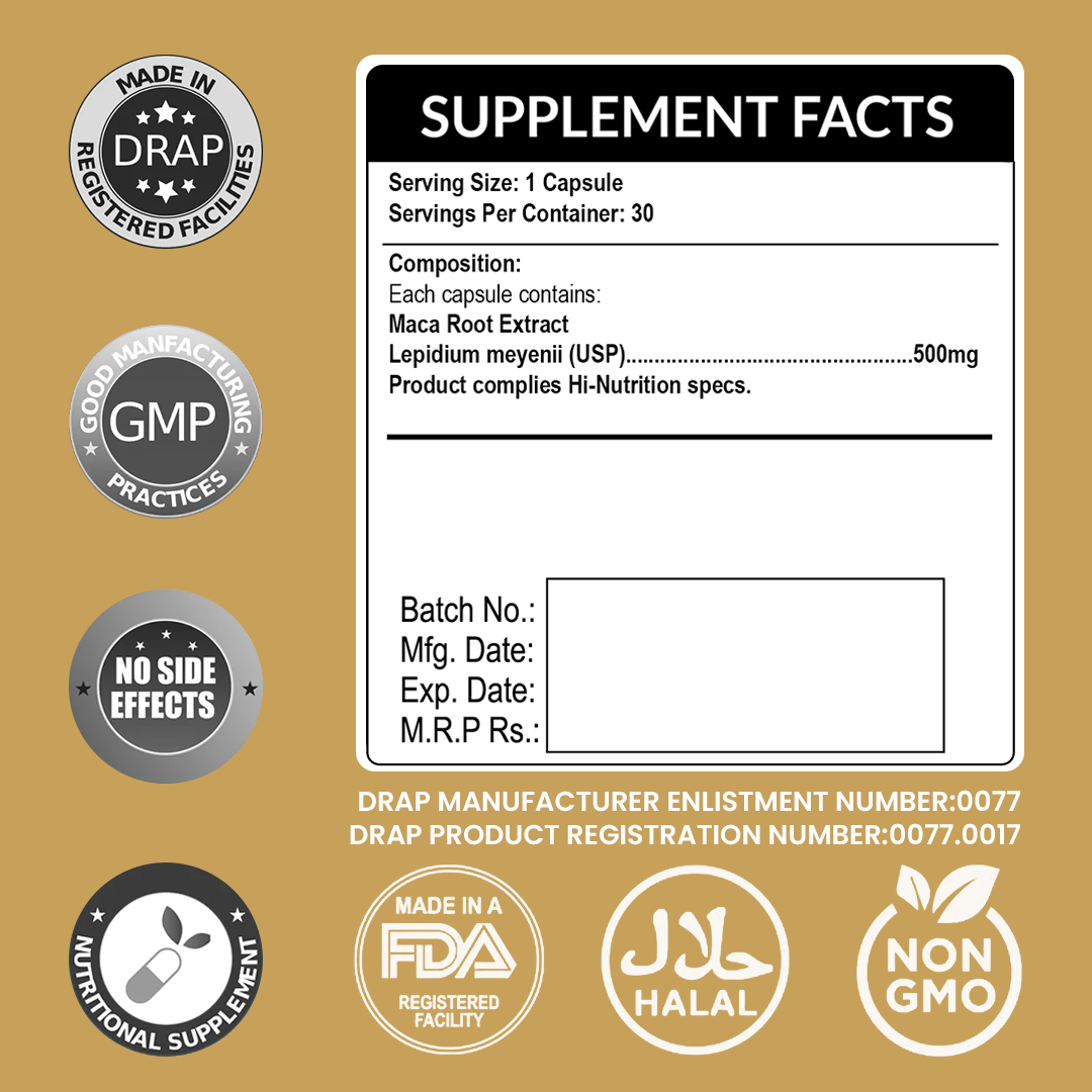 - Natural and Nutrient-Rich: Made from high-quality Maca Root Extract, packed with essential vitamins and minerals.