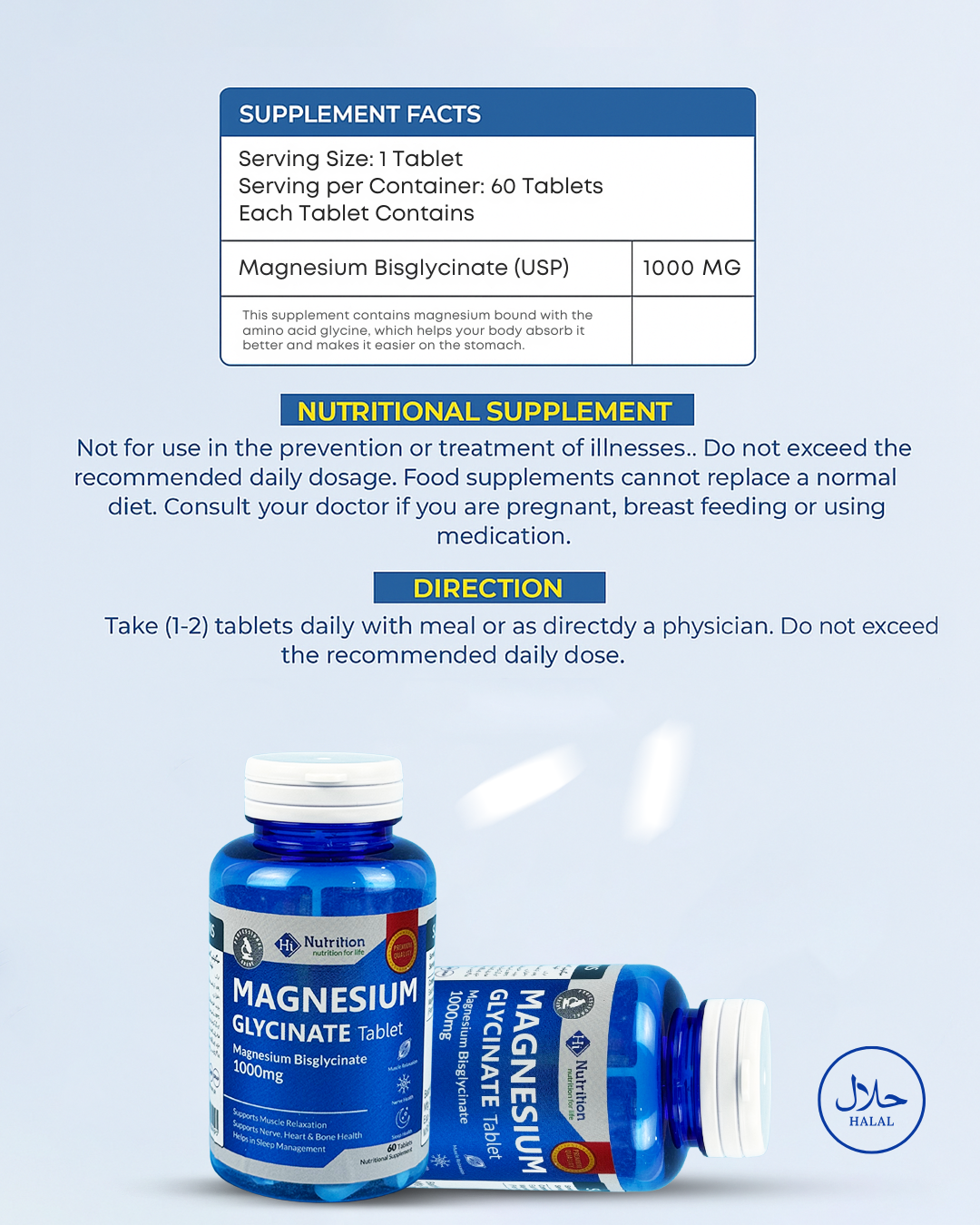 - Chelated Formula: Magnesium bound with glycine for superior absorption.