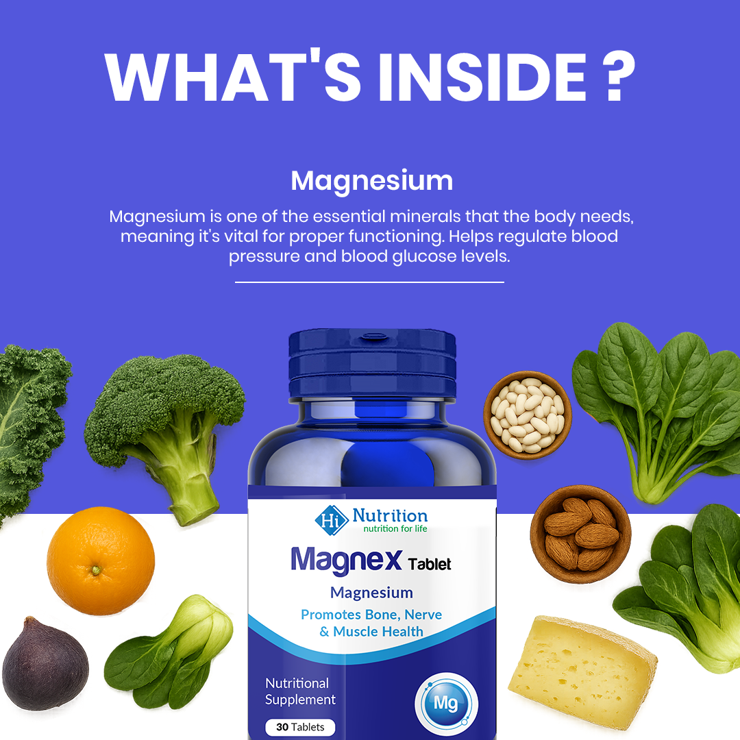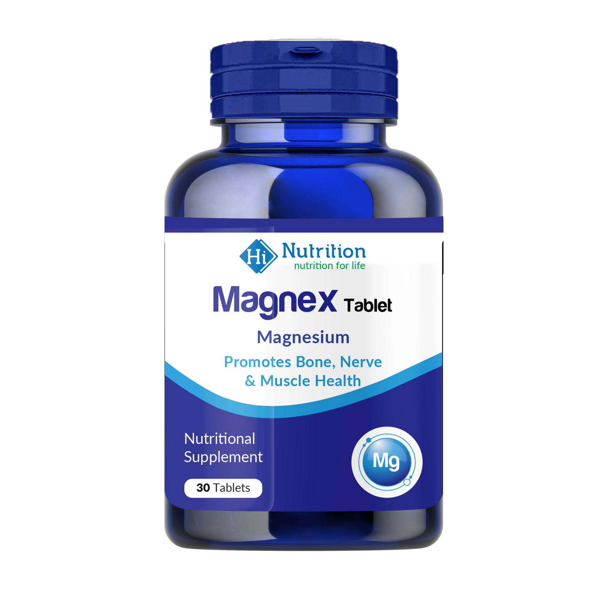 Hi Nutrition Magnex is a high-potency 500mg magnesium supplement in Pakistan, designed to support bone health, strengthen muscles, and improve nerve function — manufactured in a DRAP and FDA-approved facility for premium quality and safety.