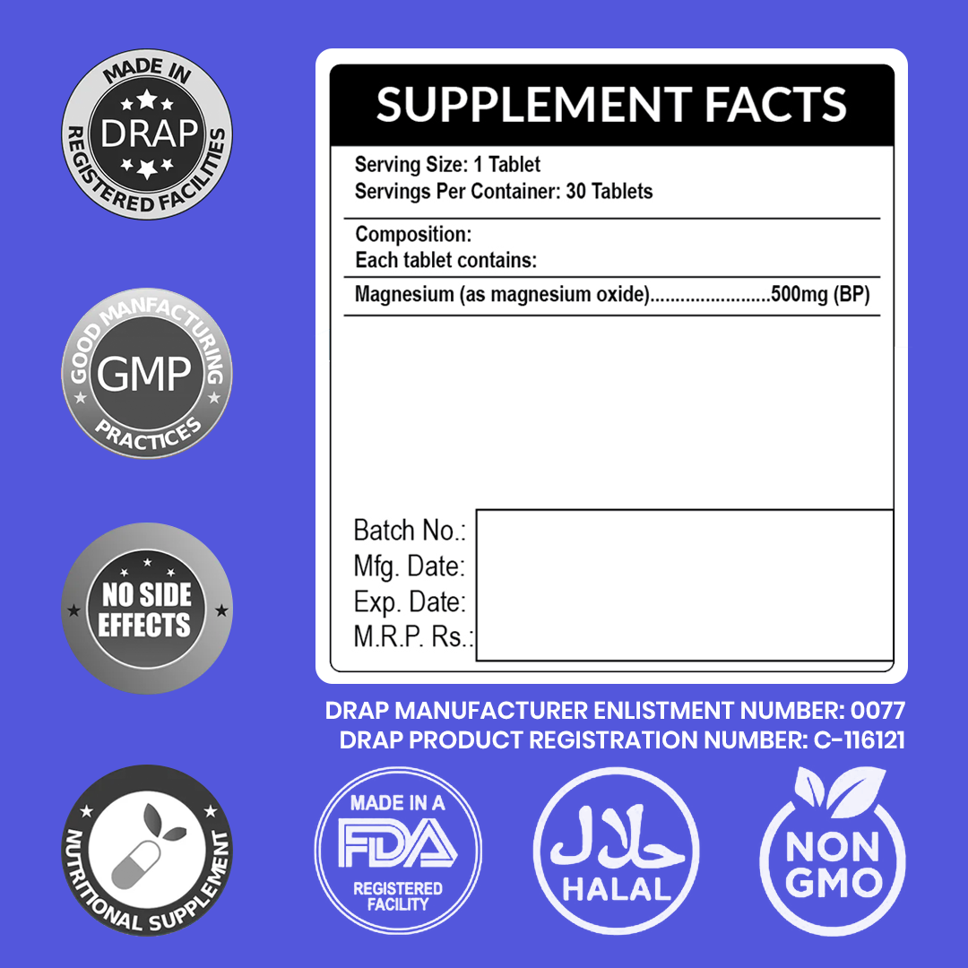 - Essential Mineral Support: Provides 500 mg of magnesium oxide to support key body functions.